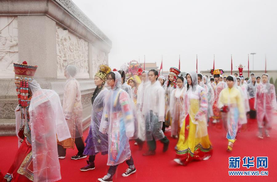 首都各界代表冒雨向人民英雄纪念碑敬献花篮[组图]