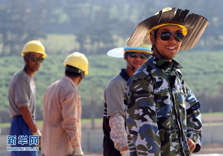 9月25日,中国工人在阿尔及利亚国家会议中心会议厅工地现场施工。由中国建筑股份有限公司(中建股份)阿尔及利亚分公司承建的阿尔及利亚国家会议中心项目位于阿尔及利亚首都阿尔及尔西郊,占地面积27万平方米,由会议厅、报告厅、展览厅、宴会厅、国家元首接待区以及配套建筑组成。项目预计2013年年末交工,建成后将成为阿尔及利亚举行重要会议和外事活动的场所。中建股份于1982年进驻阿尔及利亚市场,目前已成为当地最大的中国建筑企业。新华社发(穆罕默德·卡德里摄)