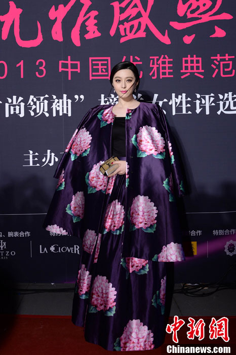 10月23日晚,2013中国优雅盛典在北京举行,当晚众星云集星光灿烂。图为范冰冰优雅亮相红毯,当晚范冰冰获得“首位时尚优雅女性典范”。中新社发李学仕 摄
