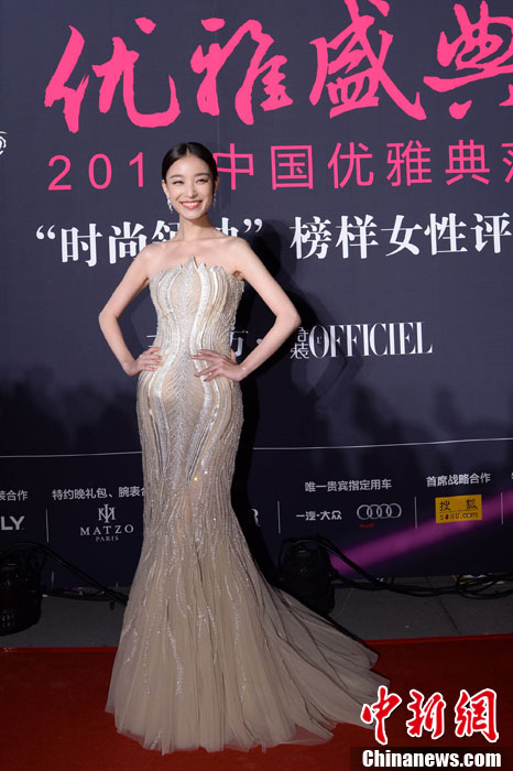 10月23日晚,2013中国优雅盛典在北京举行,当晚众星云集星光灿烂。图为演员倪妮亮相。中新社发 李学仕 摄
