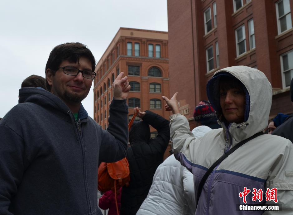 当地时间11月22日,来自美国得克萨斯州首府奥斯汀的查得夫妇手指身后“六楼博物馆”的六楼窗口,凶手奥斯瓦尔德就是从这里开枪射杀肯尼迪总统的。当天,达拉斯市首次隆重举办官方仪式,纪念美国前总统肯尼迪遇刺50周年,向这位至今仍被大多数美国人视为最伟大的总统致敬。中新社发刘景胜 摄