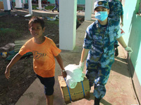 11月25日,在菲律宾塔克洛班,海上医院医务人员搬运开设前置医院的医疗设备。抵达菲灾区的中国海军和平方舟医院船25日在受灾最严重的塔克洛班市全面展开人道主义医疗救助行动。截至25日19时,作为此次人道主义医疗救援行动的主平台,和平方舟医院船海上医院已收治13名患者。从当日9时开始,22名和平方舟医院船海上医院医生携带医疗设备,在莱特省立医院旁搭建前置医院。与此同时,12名海上医院的医务人员分赴塔克洛班市东米沙鄢公立医院和罗慕尔德兹私立医院,与当地医务人员一起联合救治。新华社记者吴登峰摄