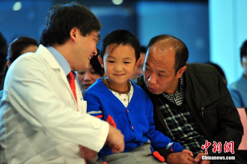 12月12日,山西被挖眼男童6岁小斌斌在深圳深圳希玛眼科医院康复出院。深圳希玛眼科医院林顺潮医生介绍,小斌斌是个坚强的孩子,住院期间已经可以通过声音准确找到父母,上厕所、洗澡等都可以自理。中新社发陈骥旻 摄