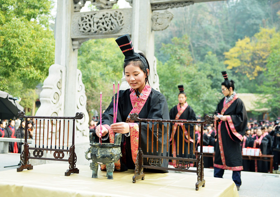 据了解,“成人仪式”是杭州万松书院悠久的传统文化之一,同学们将通过身穿汉服、佩戴金帛、学生代表、焚香、祭酒等传统礼仪流程表达对父母师长的感恩之情,并共同见证这群年轻人的成长。