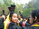 2013年12月20日,浙江省杭州市,在杭州万松书院,学生相互进行佩戴金帛。当日,240余位美术专业的高三学生在杭州万松书院举行“十八岁成人礼”宣誓仪式。