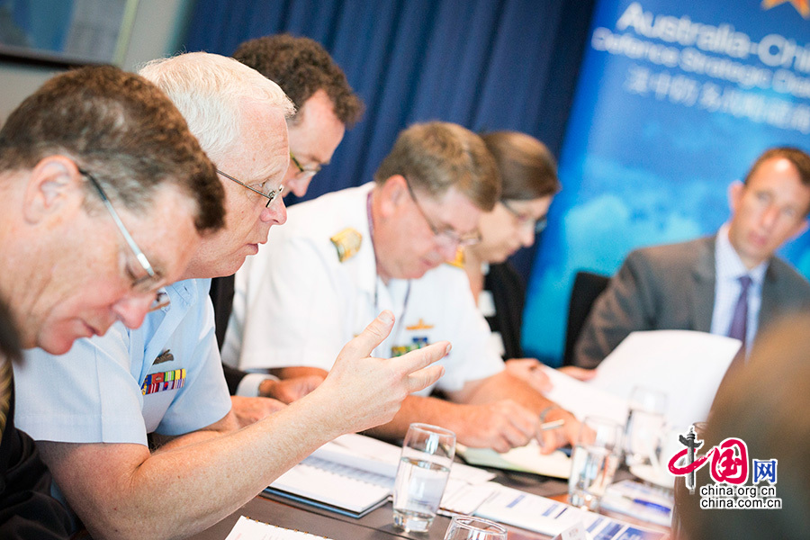 中国人民解放军副总参谋长王冠中中将上周一在澳大利亚首都堪培拉会见了澳大利亚国防部官员,并一同出席第16届澳中防务战略磋商。图片来源:澳大利亚国防部图片库