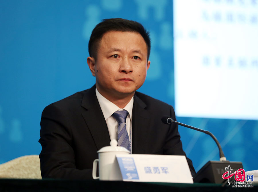 11月18日下午,在乌镇西栅景区通安客栈多功能厅举办首届世界互联网大会乌镇峰会开幕新闻发布会。图为桐乡市人民政府市长盛勇军。