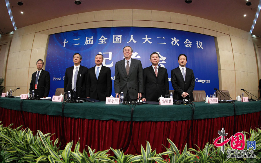 3月11日上午,十二届全国人大二次会议新闻中心举行记者会,中国人民银行行长周小川回答中外记者的提问。摄影 徐讯/人民画报