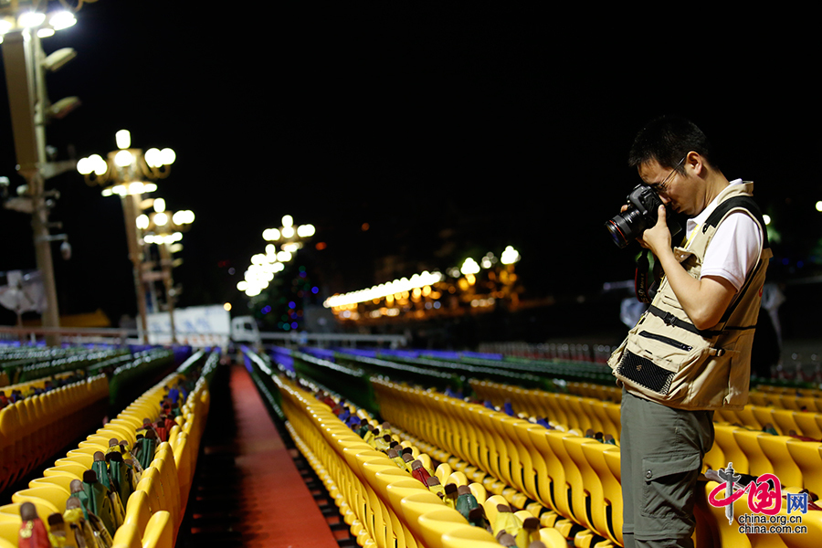 9月3日,中国网记者正在拍摄陈列在观众席上的“大礼包”。 中国网记者 杨佳 摄影