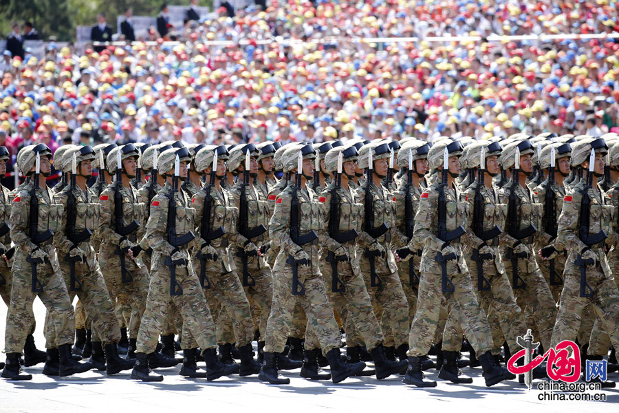9月3日,中国人民抗日战争暨世界反法西斯战争胜利70周年纪念大会在北京隆重举行。这是“攻坚英雄连”英模部队方队。中国网记者 杨佳摄影