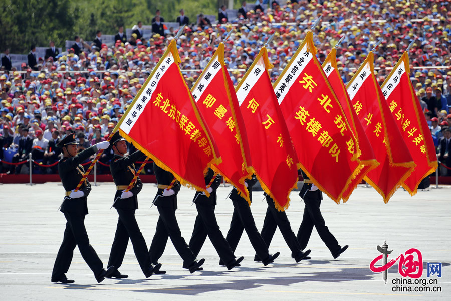 9月3日,中国人民抗日战争暨世界反法西斯战争胜利70周年纪念大会在北京隆重举行。这是“东北抗联”英模部队方队。 中国网记者 杨佳摄影