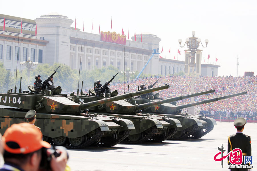 9月3日,中国人民抗日战争暨世界反法西斯战争胜利70周年纪念大会在北京隆重举行。坦克方队接受检阅。