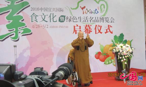 中国网江苏宜兴4月28日讯 今日,2016中国宜兴国际素食文化暨绿色生活名品博览会在佛光祖庭宜兴大觉寺开幕。开幕式由宜兴市人民政府宜兴市长张立军主持,市委书记王中苏为开幕式致辞,至5月2日,为期5天,全程免费开放。