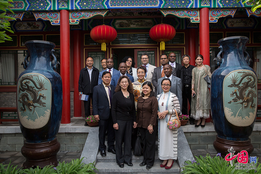 展览开幕式结束后驻华使节们参观了宋庄的艺术工作室并合影留念。 中国网 杨佳 摄影