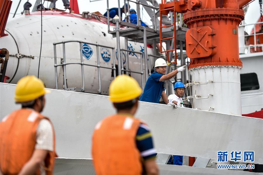 5月16日,“向阳红09”船的工作人员指挥起航。当日,中国大洋38航次第三航段从深圳起航,前往雅浦海沟和马里亚纳海沟进行科学考察。新华社记者毛思倩摄