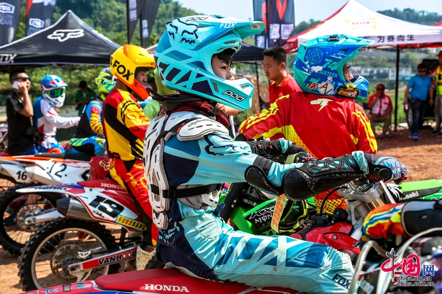 5月26日,四川宜宾市江安县,“国立剧专杯”2017年中国摩托车越野锦标赛首站(江安)赛事现场。