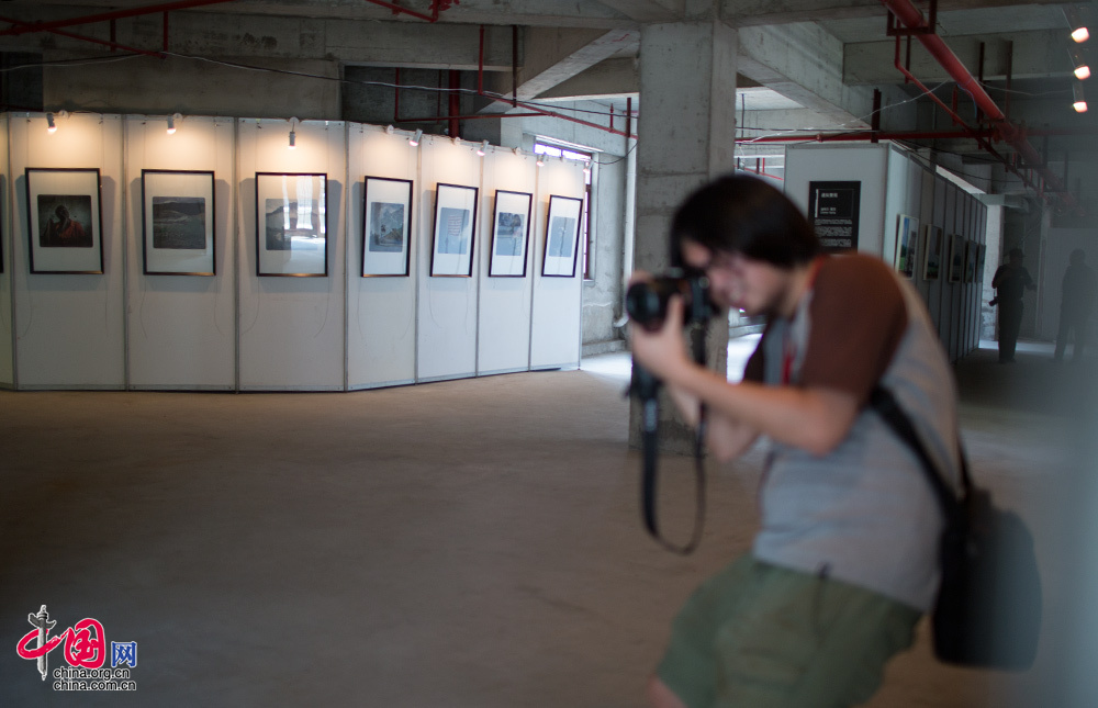 7月23日上午,“交汇点——连云港国际摄影展,2017”在江苏省连云港市连云区正式拉开帷幕。图为影展开幕首日影友参观云港老街的中国民间亮宝楼展场。 中国网 杨佳 摄影