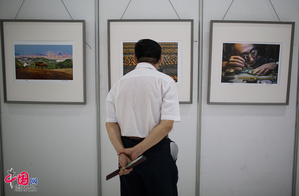 7月23日上午,“交汇点——连云港国际摄影展,2017”在江苏省连云港市连云区正式拉开帷幕。图为影展开幕首日影友参观连岛展场。 中国网 杨佳 摄影