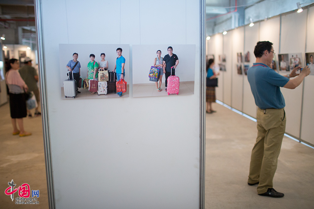 7月23日上午,“交汇点——连云港国际摄影展,2017”在江苏省连云港市连云区正式拉开帷幕。图为影展开幕首日影友参观云港老街的中国民间亮宝楼展场。 中国网 杨佳 摄影