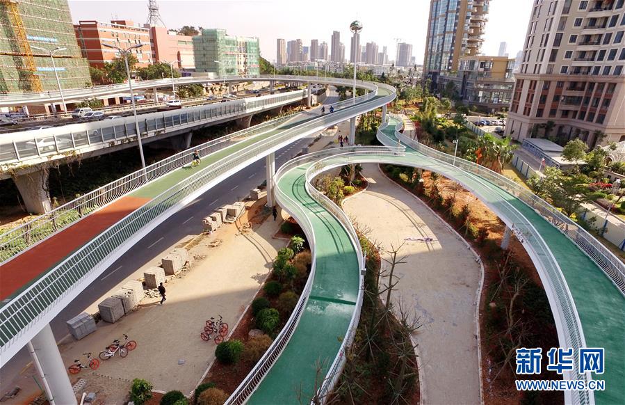 全国首条空中自行车道——厦门云顶路自行车快速道(2月9日摄)。