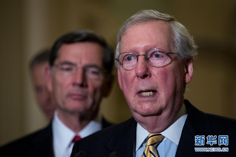 7月25日,在美国华盛顿国会山,参议院多数党领袖麦康奈尔投票后出席记者会。新华社发(沈霆 摄)