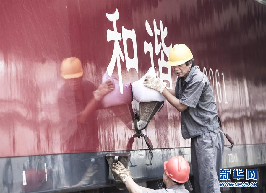 7月30日,在武汉武昌客运机车整备场检修库房,电力机车上沙工唐跃华(右)对机车进行上沙作业。当日,武汉武昌客运机车整备场上热浪滚滚,十多名机车检修人员在蒸笼般的库房内,对每台机车的车顶、机械室和车底进行检查作业。这是武汉铁路局武昌南机务段武昌整备车间职工工作场景,他们主要负责武昌火车站到达的客运机车入库后的全方位检查和保养,确保每台机车“健康”上线。入伏以来,武汉地区持续高温,检修库房温度普遍要比室外温度高出近10℃,又值暑运,这个车间的整备任务非常重。修完一辆,送走一辆,又来一辆,他们刚把身上的汗水晾干,又继续下一辆机车的整备作业。新华社记者肖艺九摄