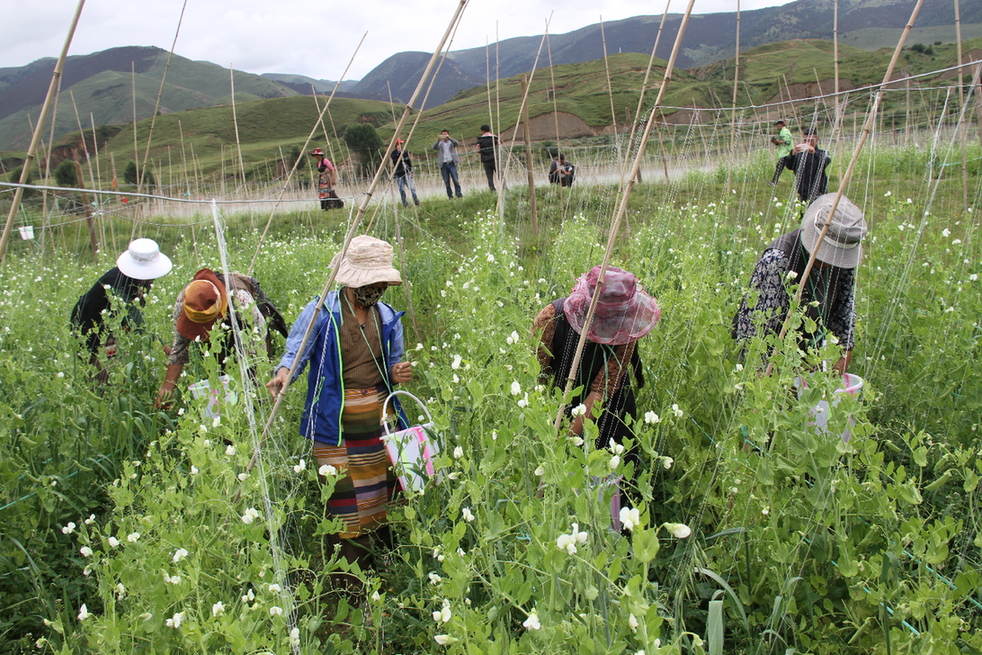 理塘县中木拉乡乃沙村村民采摘甜豆。 叶强平摄