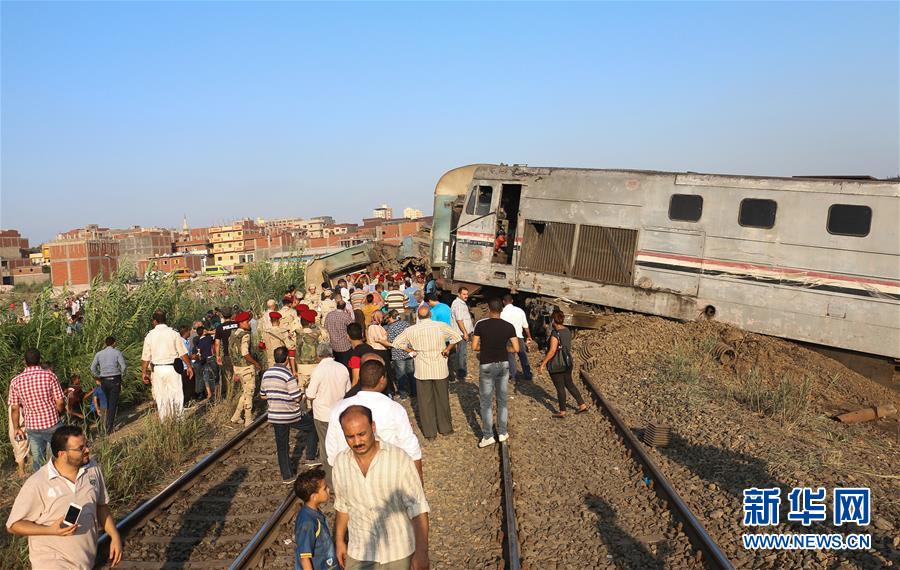 8月11日,在埃及亚历山大省,人们聚集在火车相撞事故现场。新华社发(阿斯马·阿卜杜勒拉蒂夫 摄)
