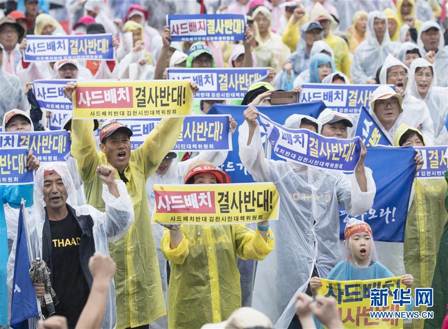 韩国民众冒雨抗议部署“萨德”[组图]
