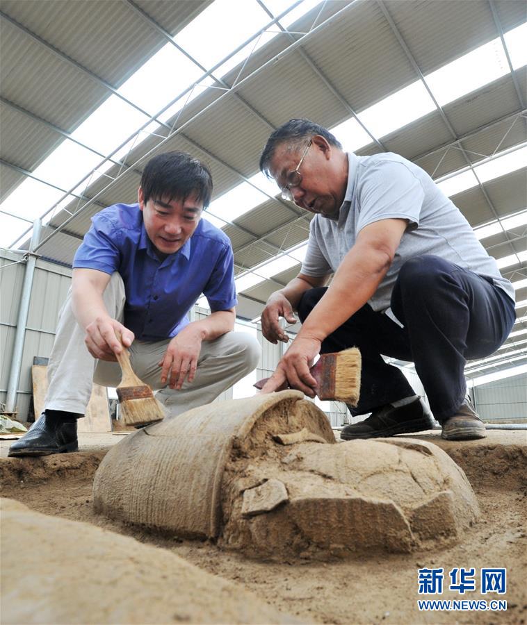8月18日,工作人员在黄骅市郛堤城瓮棺葬考古现场研讨瓮棺葬具修复方案。自2016年5月以来,考古人员在河北黄骅郛堤城遗址附近累计发掘出土战汉时期瓮棺葬110余座。多个科研院所和高校日前启动瓮棺提取和修复工作,他们将用半年时间,同步采集人骨和DNA,进而系统研究瓮棺葬,为探索古代东亚文化交流提供依据。新华社记者牟宇 摄