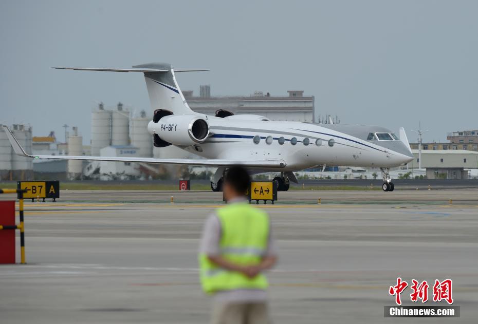 9月2日上午,南非共和国总统祖马乘坐专机抵达厦门,出席金砖国家领导人第九次会晤。图为祖马的专机。中新社记者 侯宇 摄