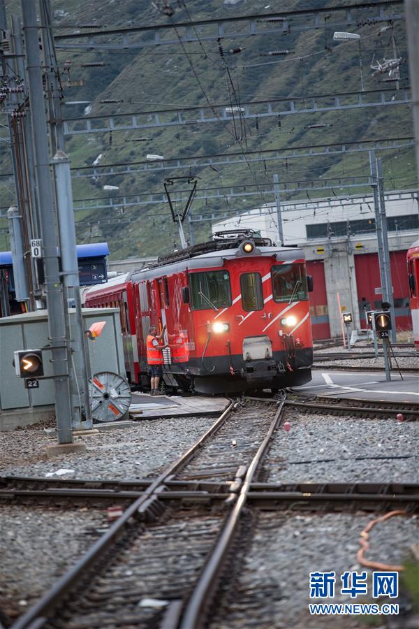 9月11日,在瑞士乌里州安德马特镇火车站,工作人员检查一列停靠的列车。瑞士警方11日说,两列火车当天在乌里州安德马特镇附近相撞,造成约30人受伤。中国驻瑞士使领馆向新华社记者证实,截至目前尚未收到中国公民受伤的报告。新华社记者徐金泉摄