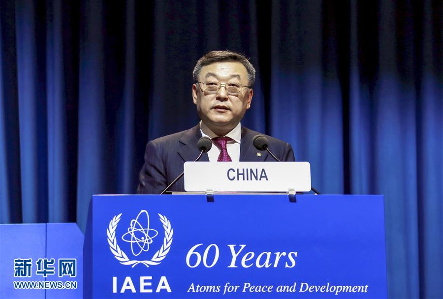 9月18日,中国代表团团长、国家原子能机构主任唐登杰在国际原子能机构第61届大会上发言。当日,为期5天的国际原子能机构第61届大会在维也纳开幕,大会将讨论核领域技术合作、核安全和保障等广泛话题。唐登杰在发言时表示,中国在核能事业发展过程中始终秉持理性、协调、并进的核安全观,支持国际原子能机构在核安保国际合作中发挥核心作用。新华社记者 潘旭 摄
