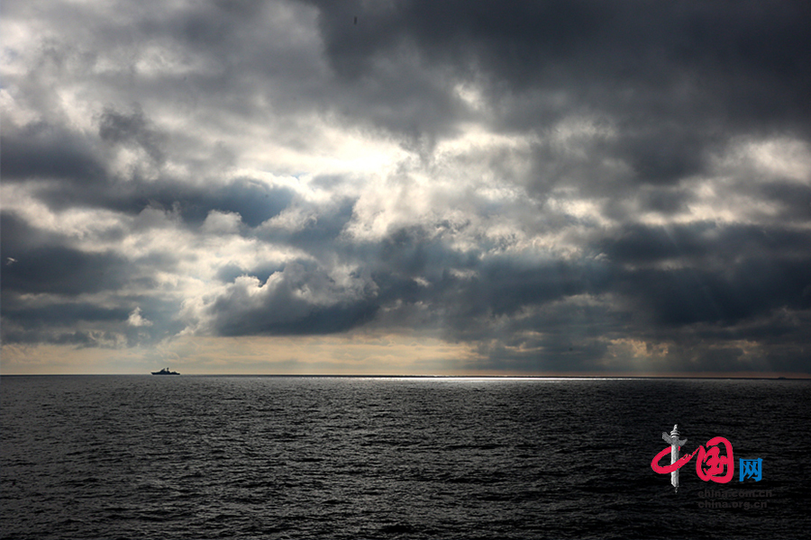 中俄海军舰艇编队航行。中国网 鲁楠摄