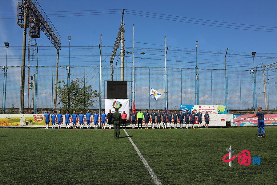 2017中俄军演第二阶段中方编队与俄方进行足球友谊赛。中国网 鲁楠摄