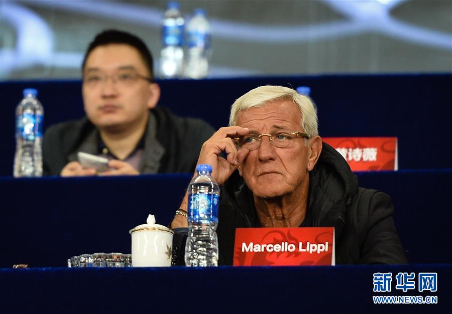 10月7日,中国男足主教练里皮(右)在主席台观赛。当日,在江苏省江阴市举行的2017年中国足协中国之队国际足球赛中,中国U22国家男子足球队以2比2战平洪都拉斯U22国家男子足球队。新华社记者李响 摄