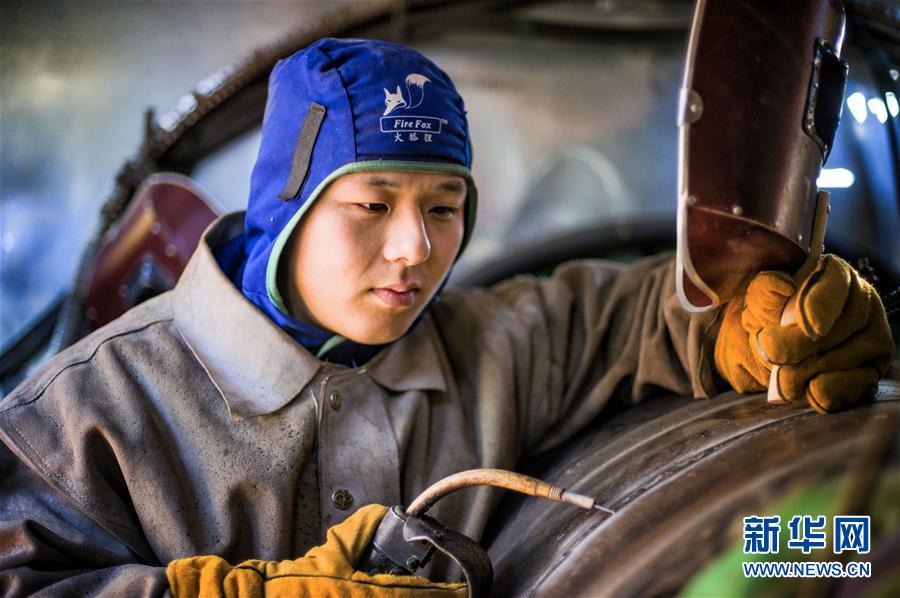 王天明在中俄原油管道二线工程进行焊接作业(2017年3月23日摄)。 “铁人”是上世纪五六十年代人们送给大庆石油工人王进喜的另一个名字,铁人精神准确概括了王进喜的崇高思想、优秀品德,是当时东北工人精神风貌的真实写照。半个多世纪过去了,铁人精神的光芒一直照耀着白山黑水,铁人精神像一颗种子在黑土地上生根发芽,在东北振兴的征程中,有一些人默默奋斗在各自的岗位上,自觉继承和发扬铁人精神,他们是各行业的杰出代表,是东北新时期的“新铁人”,是东北振兴的脊梁。新华社发(王宇摄)