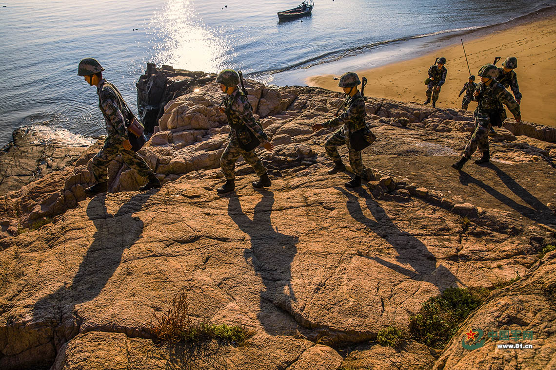 西洋岛官兵巡逻查滩。