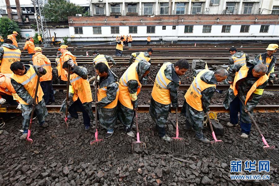 郑州铁路局将于10月10日至11月11日,利用33天时间,将郑州火车站南北两端最后73组客车进路木枕道岔全部更换为混凝土道岔,郑州火车站客车进路道岔将告别木枕时代。新华社记者冯大鹏摄