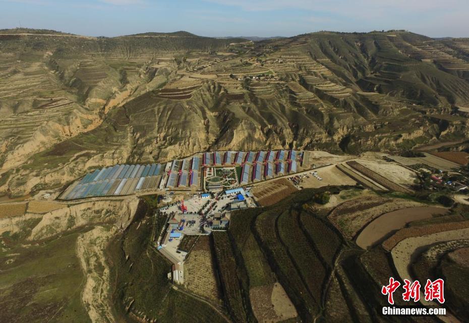 10月下旬,村民在兰州榆中县甘草店蔡家沟村黄土高原山沟中建成的文化音乐喷泉广场上休闲娱乐。该广场由本地农民企业家张海云自筹3000多万元建设而成,文化音乐广场免费供村民休闲娱乐。杨艳敏摄