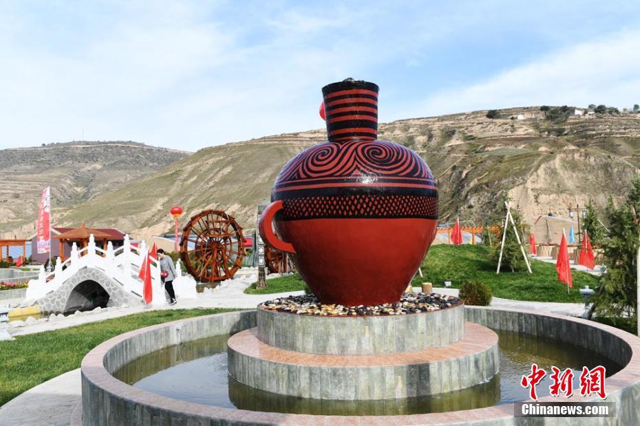 广场上的彩陶喷泉景观。杨艳敏 摄