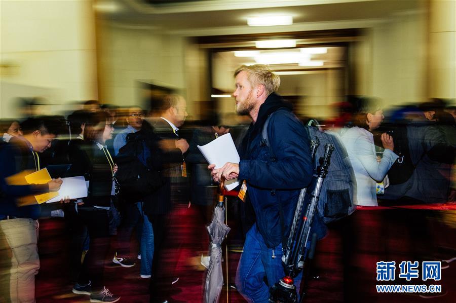 10月18日,中国共产党第十九次全国代表大会在北京人民大会堂开幕。这是记者领取十九大报告。新华社记者 刘金海 摄