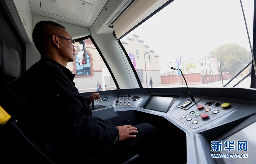 10月27日,在开滦1878站,氢燃料电池有轨电车司机准备出发。 10月26日,中车唐山公司研制的世界首列商用型氢燃料混合动力100%低地板现代有轨电车在河北唐山市唐胥铁路载客运营。这也是全球范围内,氢燃料电池有轨电车首次商业运营,标志着我国在新能源轨道交通领域实现重大突破。新华社记者王晓摄