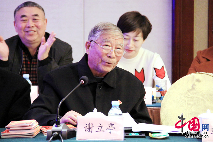 2017年“全国老有所为楷模”集体代表,山东省济宁市任城区“谢立亭正能量宣传党小组”组长谢立亭发言。中国网记者 杨楠摄影