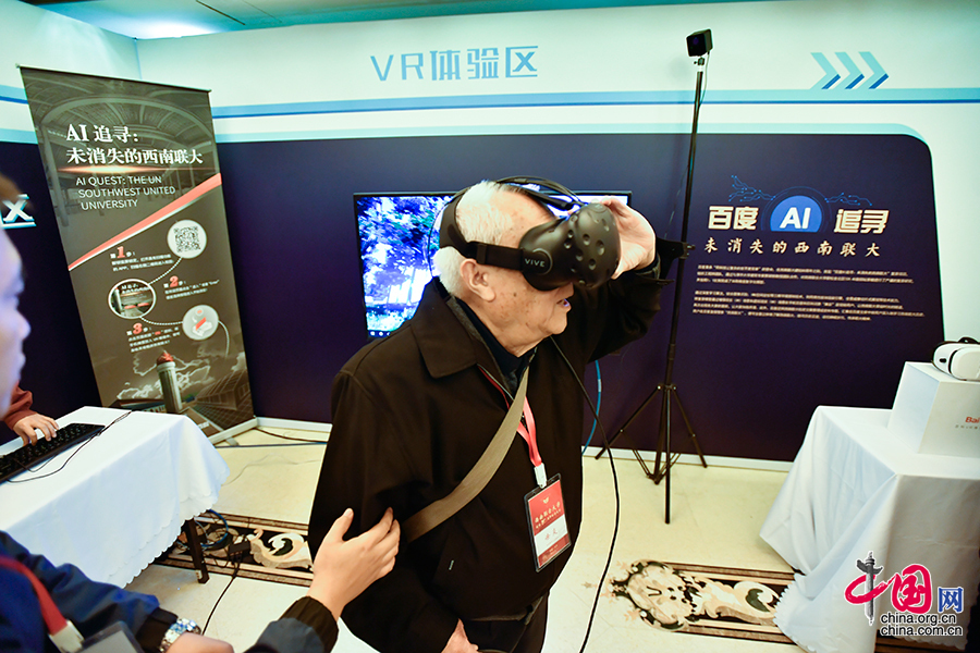 西南联大北京校友体验《百度AI追寻:未消失的西南联大》数字复原项目。 中国网记者 张若梦 摄