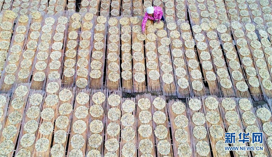 11月7日,安徽省亳州市谯城区沙土镇田大村的农民在晾晒菊花饼。当日是二十四节气中的立冬,各地农民抢抓农时做好采收、播种、御寒管理等工作,田间地头一派繁忙。新华社发(刘勤利 摄)