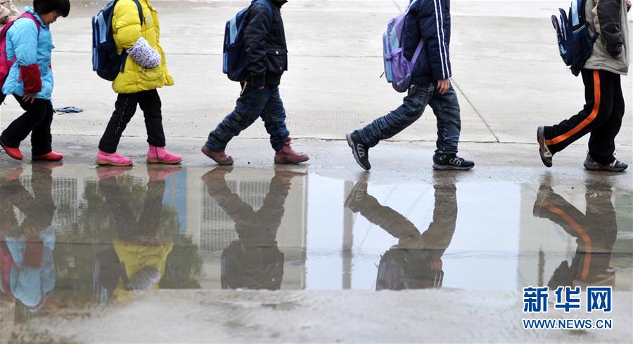 5名孩子走在上学的路上(2011年11月30日摄)。