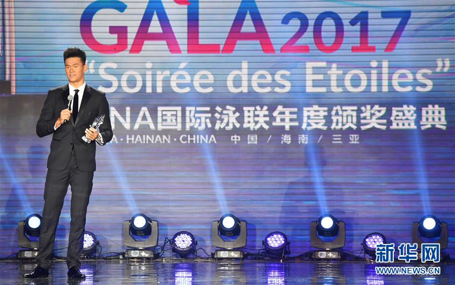 12月2日,孙杨获得年度中国游泳事业杰出贡献奖。当日,2017国际泳联年度颁奖盛典在三亚举行,颁发了年度跳水最佳运动员奖、年度游泳最佳运动员奖等奖项。新华社记者 郭程 摄