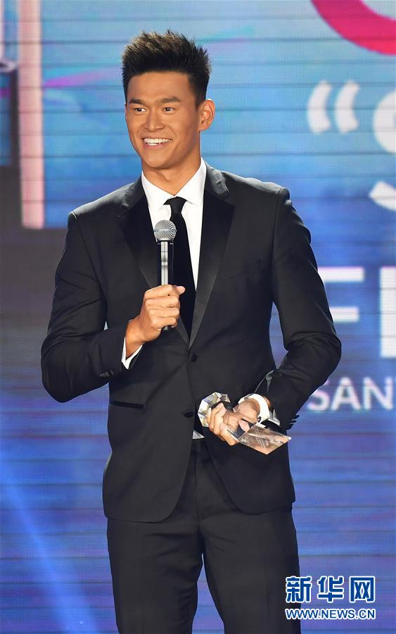 12月2日,孙杨获得年度中国游泳事业杰出贡献奖。当日,2017国际泳联年度颁奖盛典在三亚举行,颁发了年度跳水最佳运动员奖、年度游泳最佳运动员奖等奖项。新华社记者 郭程 摄