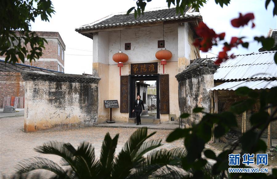 12月4日,在广西贺州市八步区莲塘镇仁冲村,一名游客走出客家围屋大门。